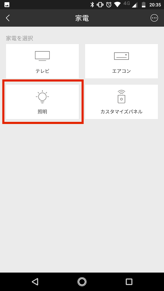 3.テレビだろうがエアコンだろうが照明を選択します。