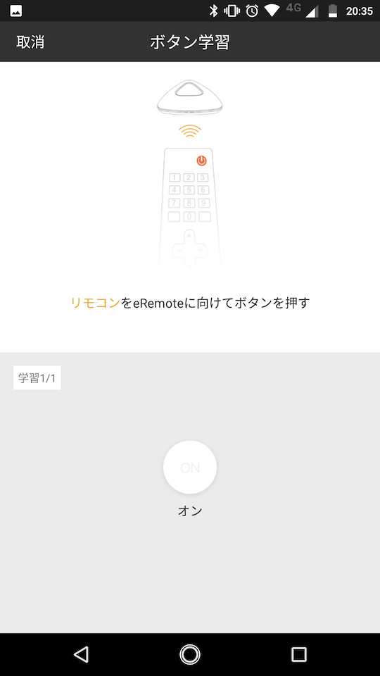 4.リモコンの学習(on,off,明,暗)を学習します。