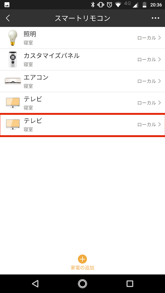 でも、結局TVとかのリモコンはボタンを使うので、TVが二つ登録されることとなりました。